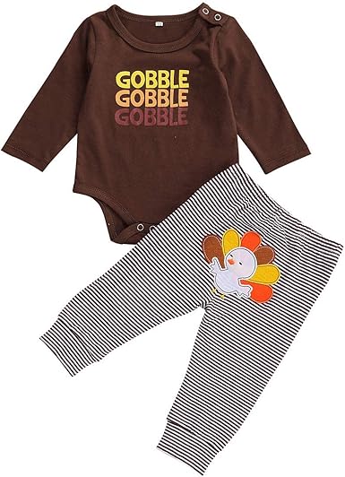 Amazon Com Newborn Baby Boy Girl Thanksgiving Outfits Turkey Print Romper Bodysuit Pant Hat My 1st Thanksgiving Clothes Set Clothing : Got in haidens 1st thanksgiving outfit!