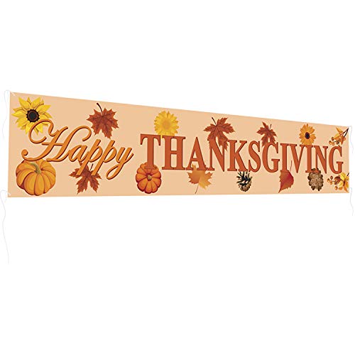 Happy Thanksgiving Outdoor Banner , Xjf Give Thanks Thanksgiving Decoration Banner,17.8X 98 Thanksgiving Day Banner,Happy Fall Harvest Banner For Thanksgiving Party Outdoor Indoor Decor Supplies.