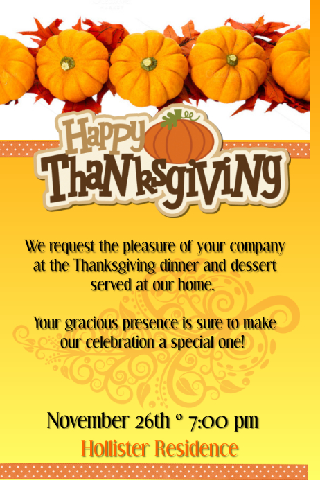 Thanksgiving Invitations 365greetings Com : Choose From 27 Printable Design Templates, Like Thanksgiving Invitation Posters, Flyers, Mockups, Invitation Cards, Business Cards, Brochure,Etc.